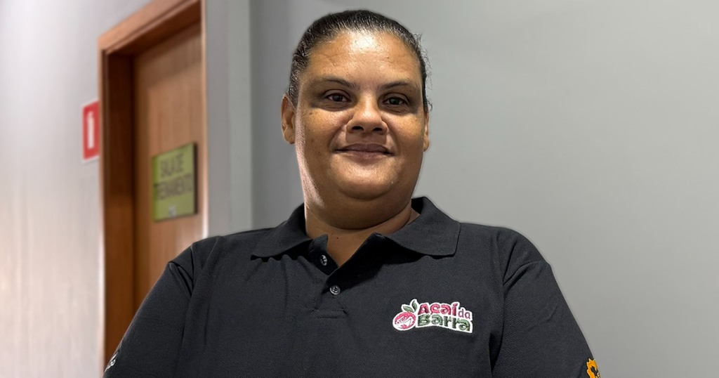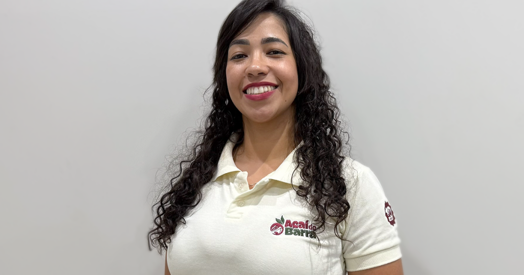 Depois de 10 anos em outra área, Janaína decidiu mudar de caminho, e encontrou no Açaí da Barra uma nova oportunidade. “Minha experiência aqui está sendo muito boa. Estou lidando com pessoas, com clientes, estudando pontos estratégicos, vendendo franquias. Estou muito feliz de estar aqui.”
